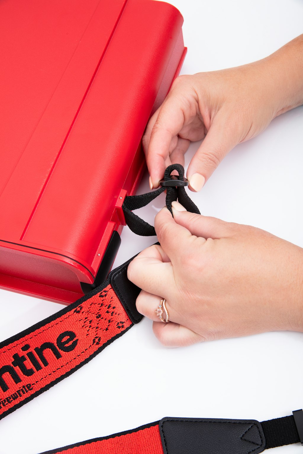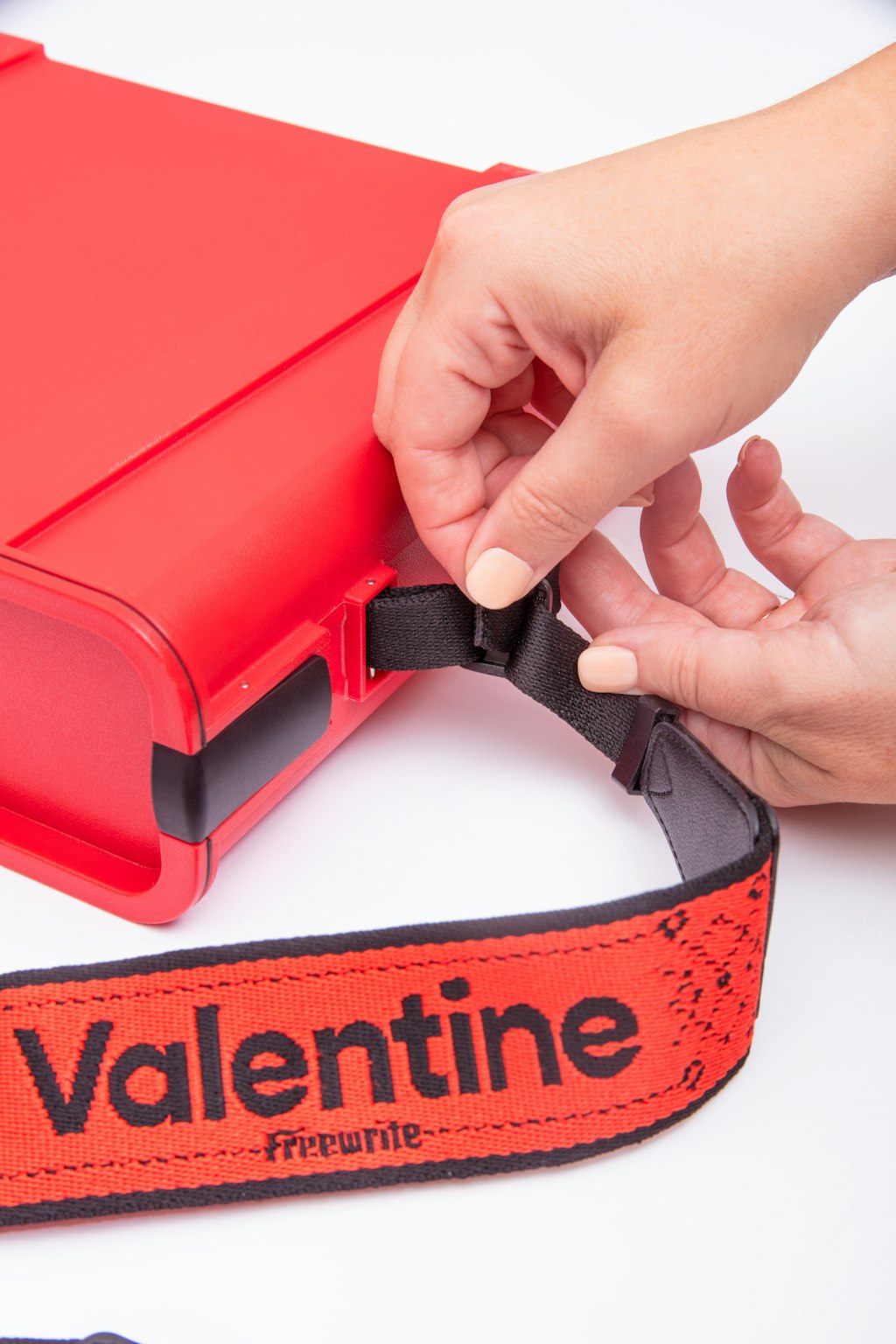 Valentine ships with a gorgeous custom case and branded strap. Here are the directions to attach the strap to the case.